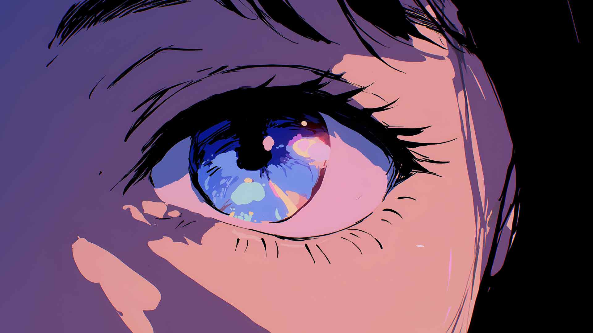 动漫女孩眼睛天空倒影蓝紫色桌面壁纸