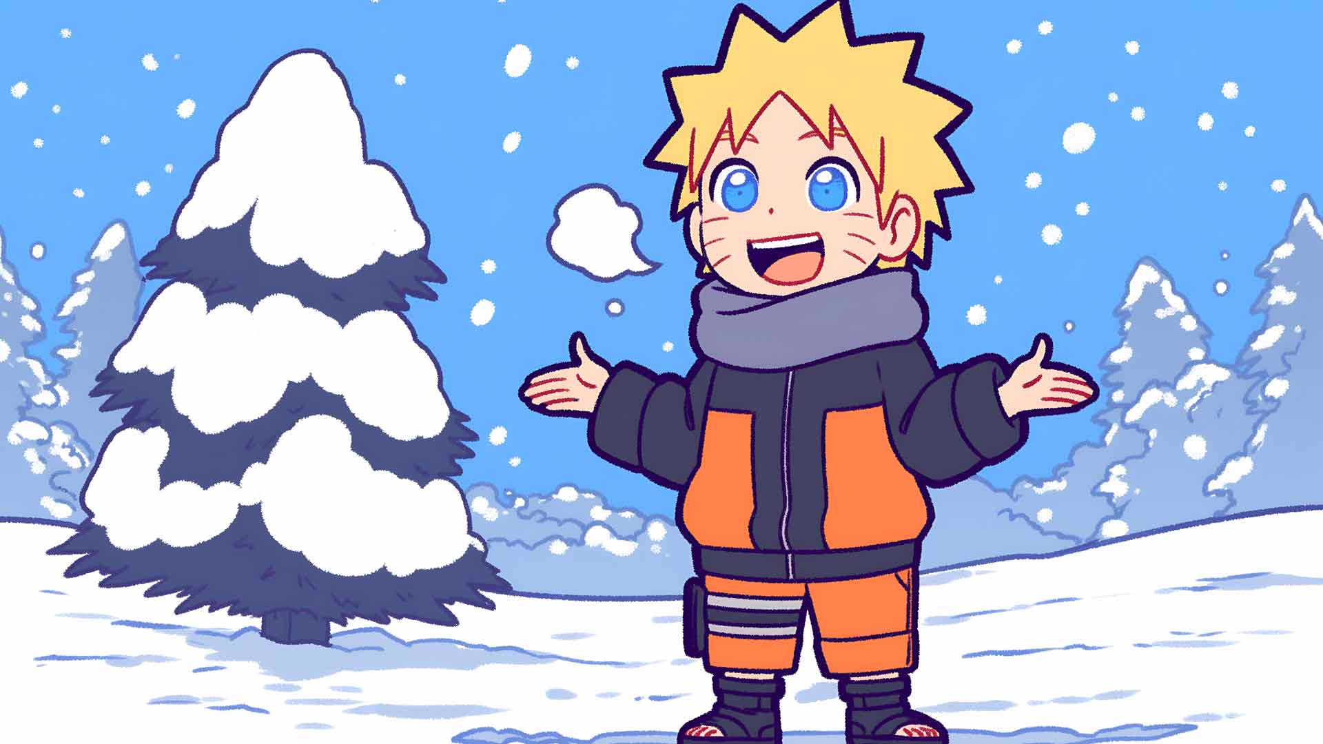 戴着雪地围巾的漩涡鸣人Q版冬季围巾快乐桌面壁纸